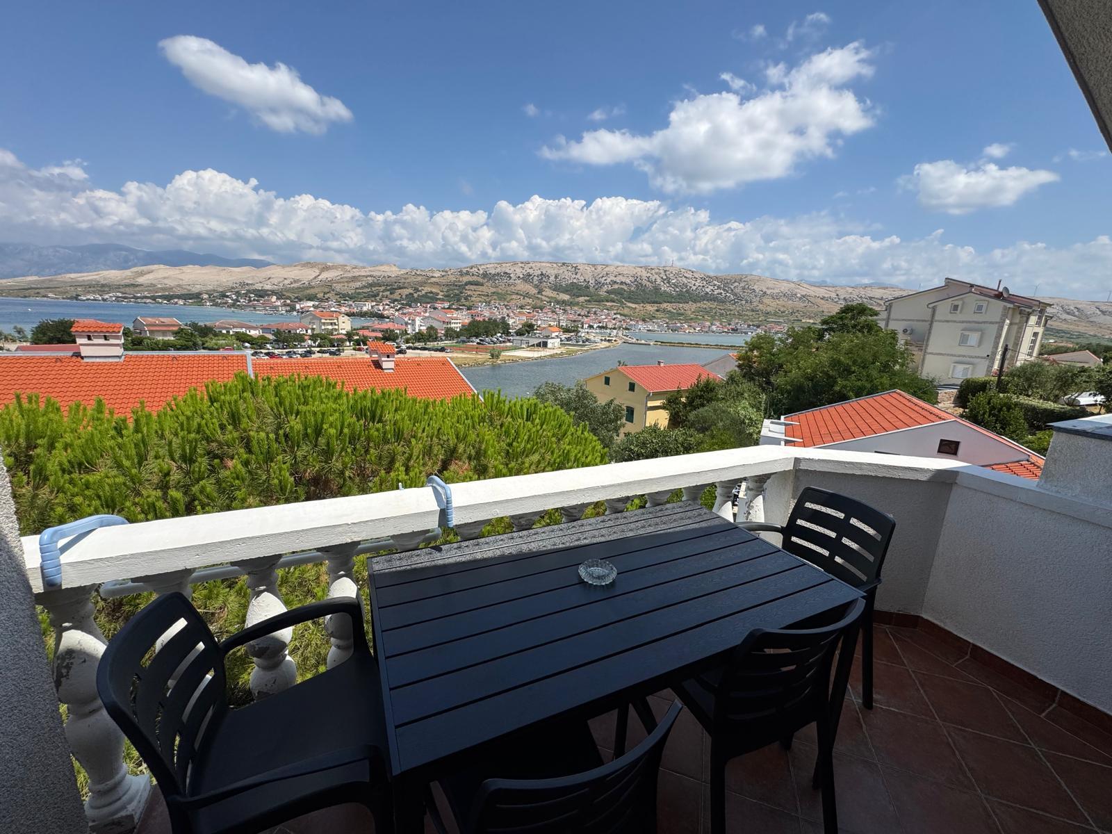Ewa PL; The room was very comfortable, with a direct view of the sea and Katine Bridge. Good air conditioning, nice bathroom, comfortable beds. Possibility to use the kitchen located on the groundfloor with washing machine. Perfectly located in the very center - next to shops, restaurants, cafes, but also close to the beach. Very hospitable, warm hosts welcomed us with a plate of local delicacies. The island of Pag is unique, raw, moonlit. The town of Pag is charming - not too big, but has everything you need. Perfect for relaxation.